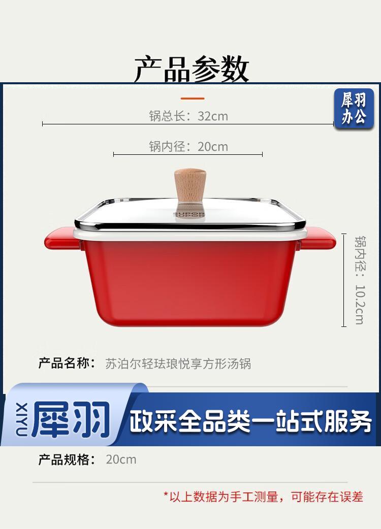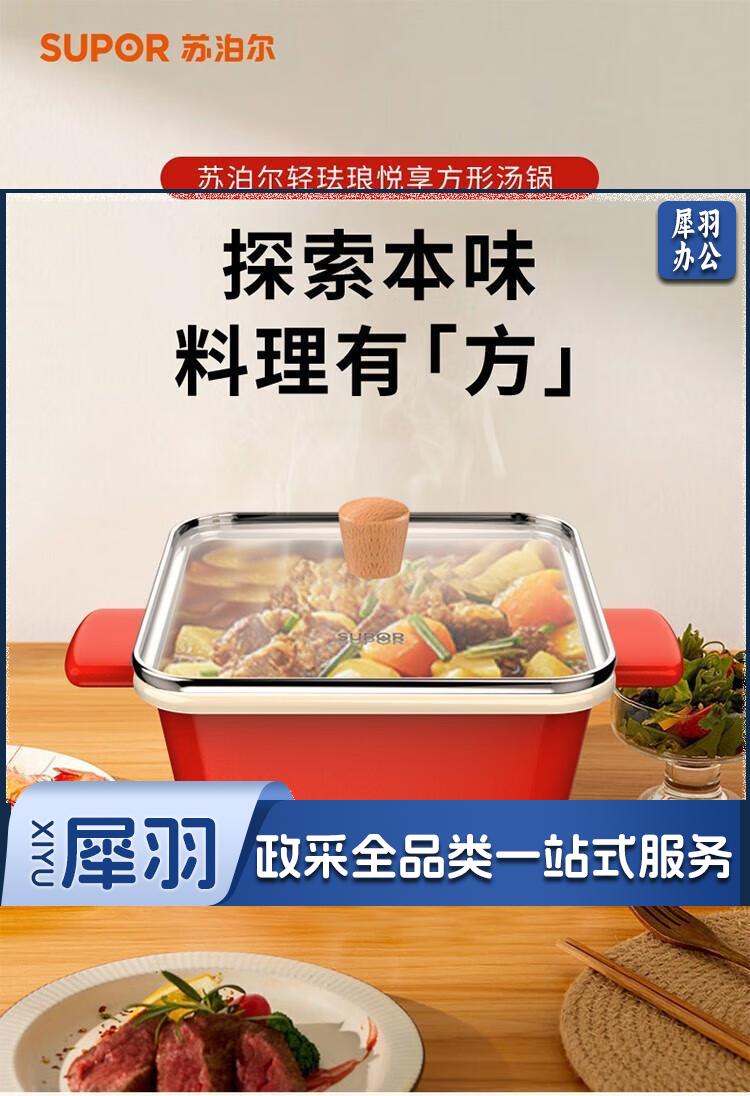 苏泊尔(SUPOR)辅食料理机轻珐琅悦享方形汤锅20CM 电磁炉明火锅具 VT20QF01烹调电器