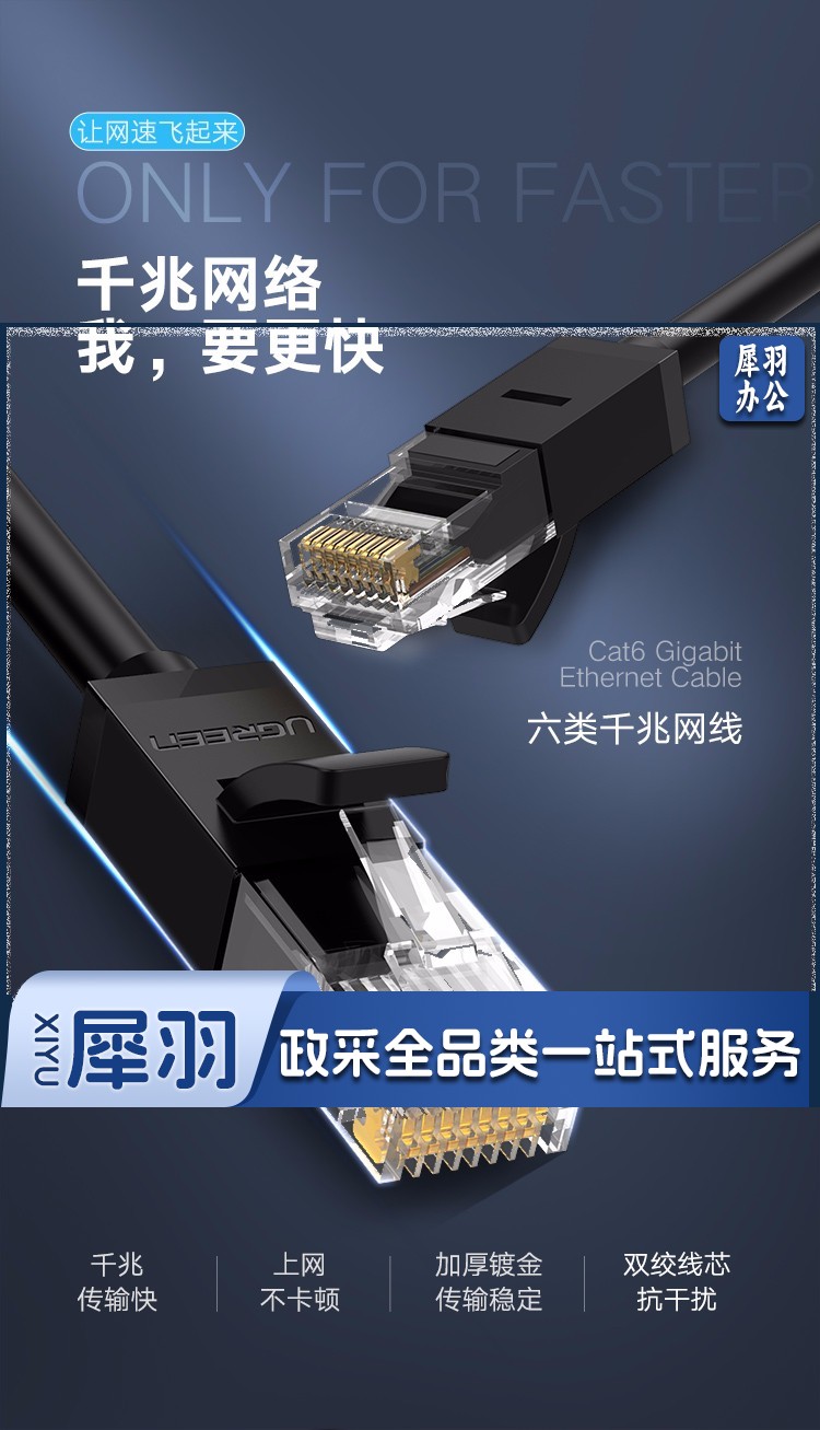 绿联 六类网线 CAT6类千兆八芯双绞非屏蔽跳线8芯 电脑宽带家用工程装修成品监控网络连接线 黑色40米