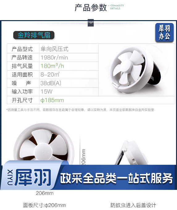 金羚(JINLING)圆形卫生间浴室墙壁排气扇窗式厨房油烟排风扇6寸APC15-2-1