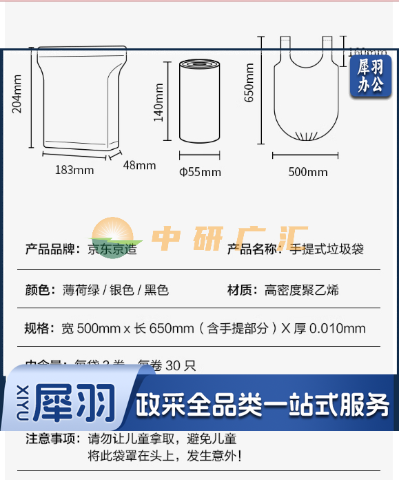 京东京造 大号50*65cm手提垃圾袋10um厚90只厨房客厅卫生间防刺破