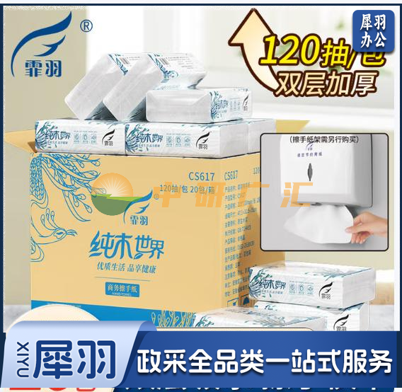 霏羽擦手纸2层120抽*20包商用酒店商场卫生间抹手纸干手纸柔整箱CS617