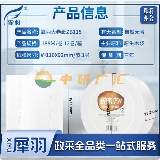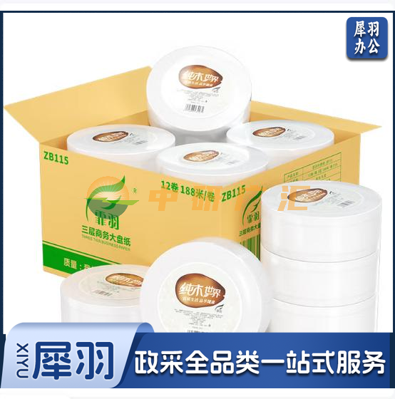 霏羽有芯大卷纸3层188米*12卷商用大盘纸卷筒纸卫生纸酒店卫生间ZB115