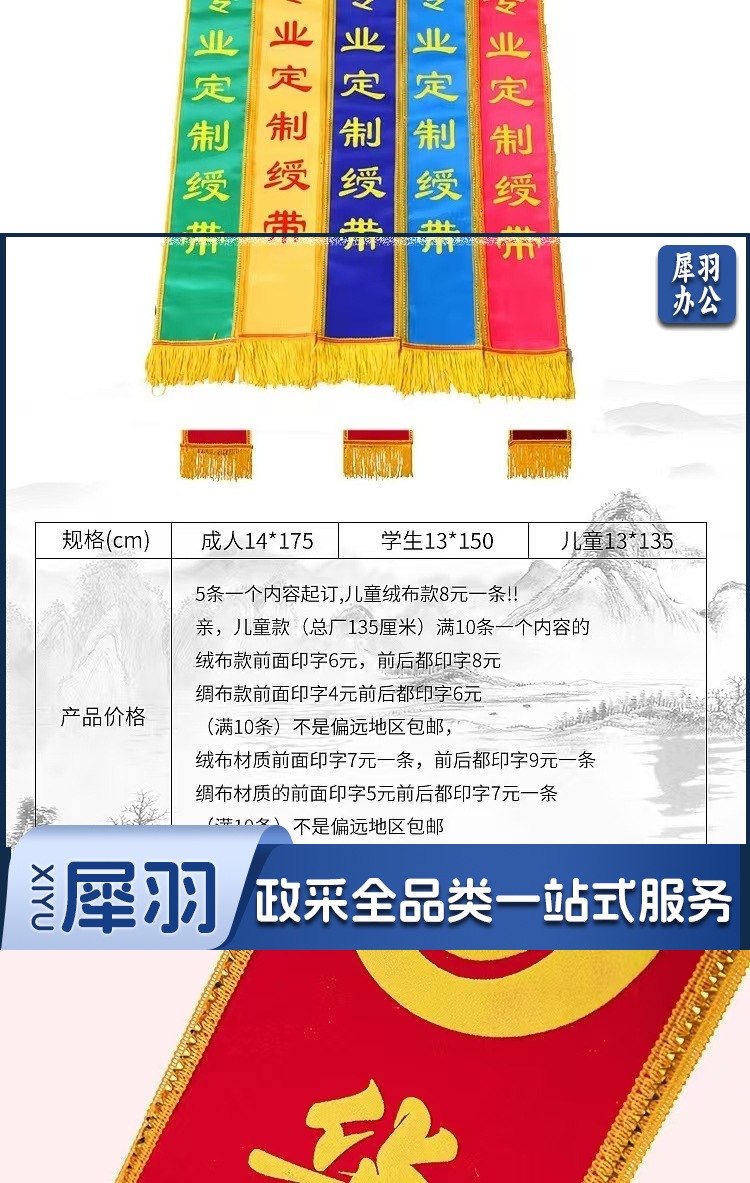 绶带贡缎绶带袖标执勤值日安全员空白红色棉布袖标袖套印字礼仪(1.8米成人绶带)