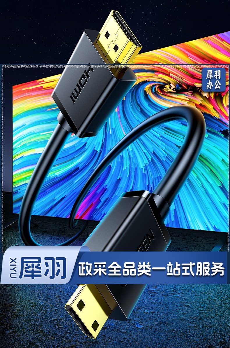 绿联 Mini HDMI转HDMI转接线 HDMI2.0版 微型4K高清转换线 笔记本电脑平板手机相机接电视投影仪连接线 3米