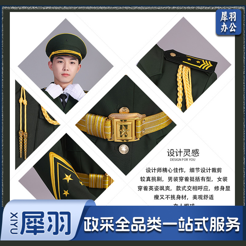 国旗班仪仗队服装学生升旗仪式护卫队礼服(蓝色13件套)