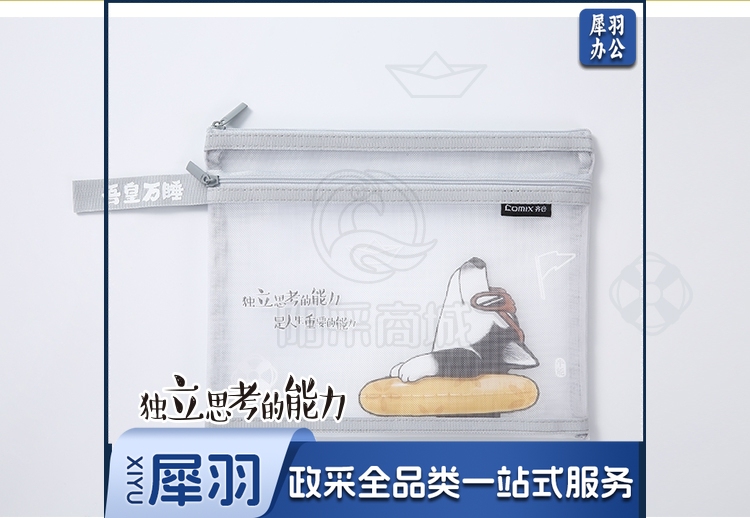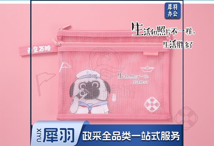 齐心(Comix)吾皇万睡A5文件袋透明双层网纱拉链袋档案袋办公资料袋试卷票据收纳袋 黄色WHA3368