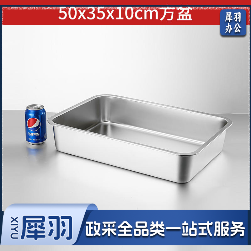 304不锈钢方盆长方形方盘自助餐份数盆加深托盘快餐菜盆 50*35*10