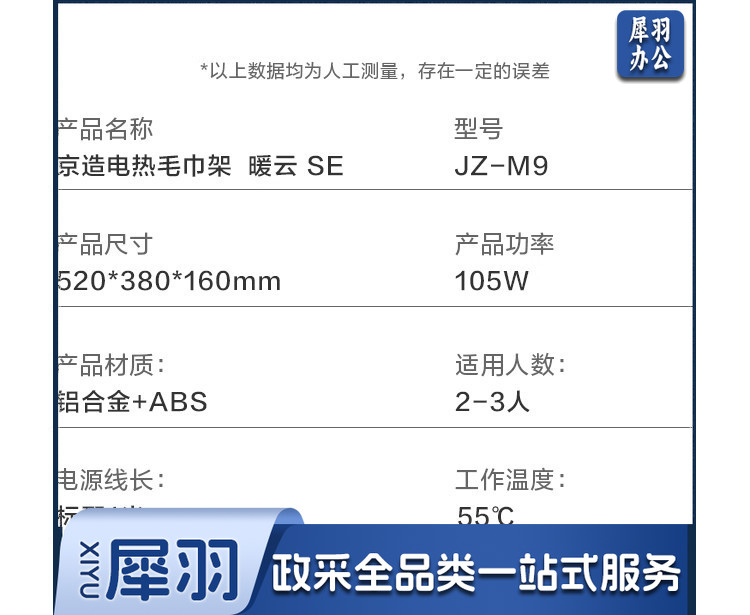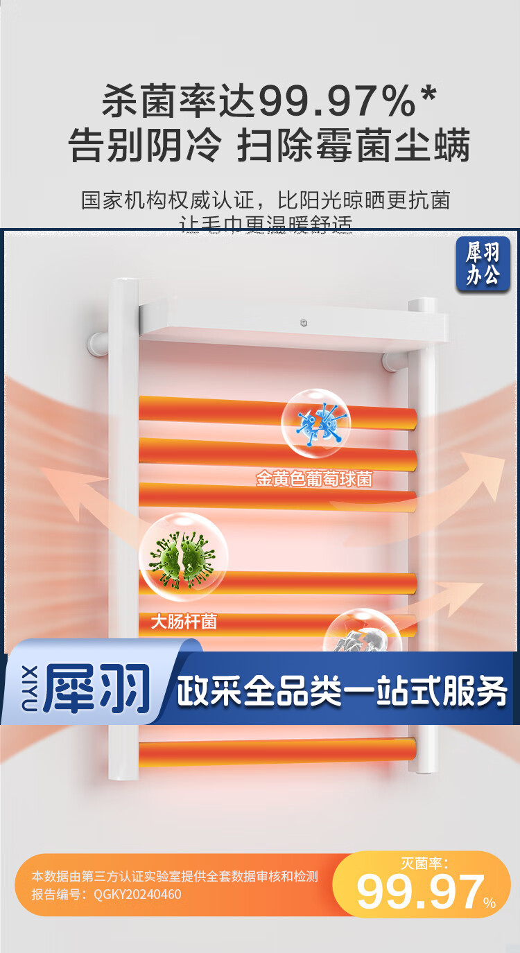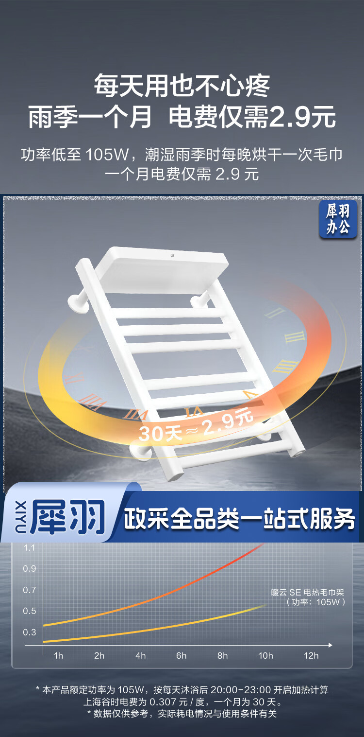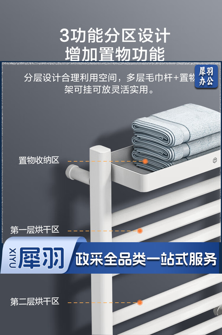 京东京造暖云SE免打孔电热毛巾架 碳纤维加热 卫生间烘干置物架 柔雾白