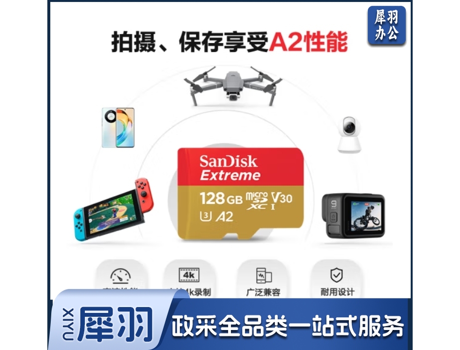 闪迪(SanDisk)128GB TF(MicroSD)内存卡 4K极速金卡A2 V30 U3行车记录仪 运动相机无人机 监控存储卡 读190MB/s