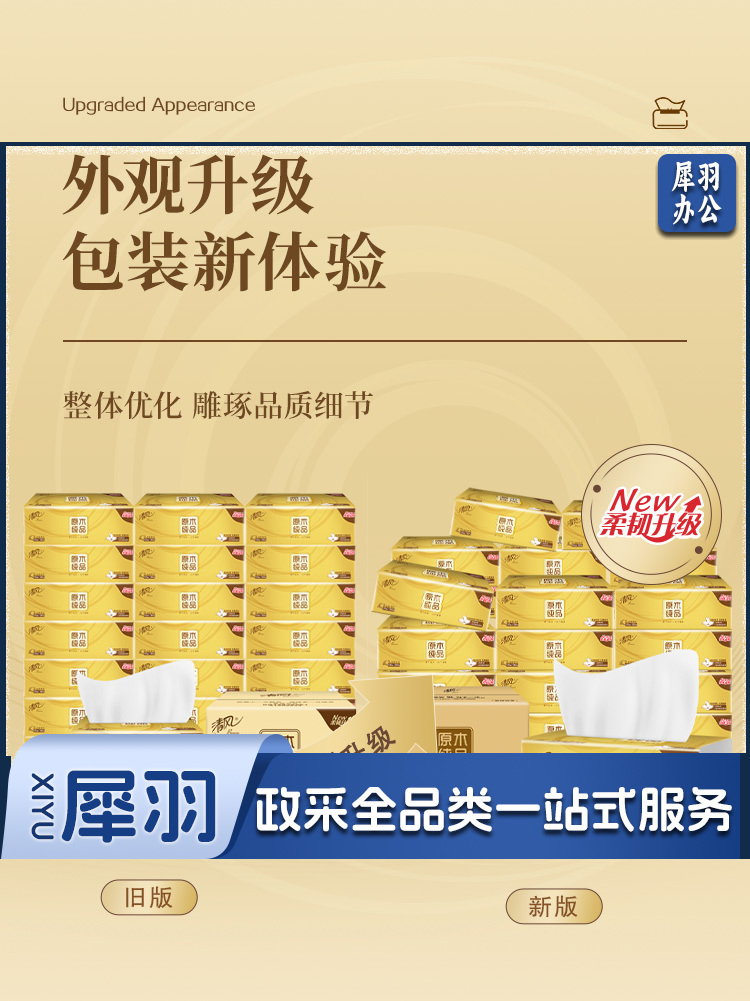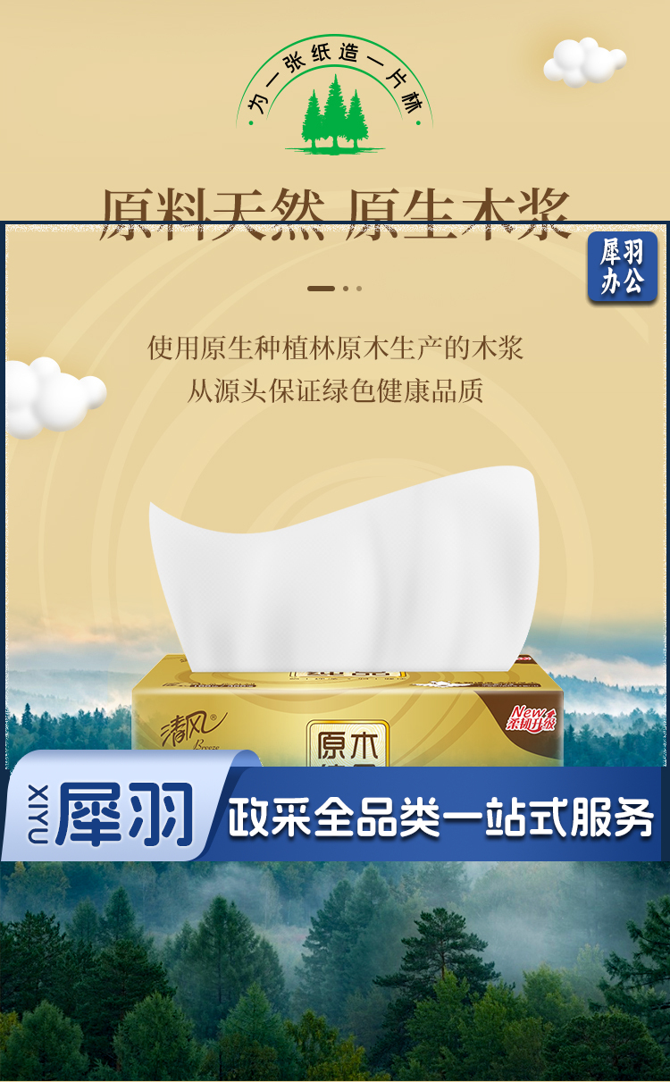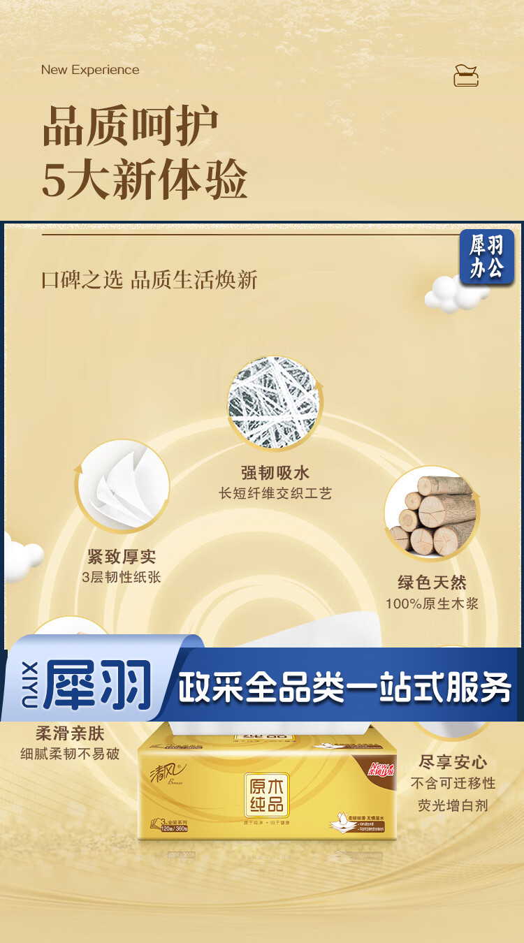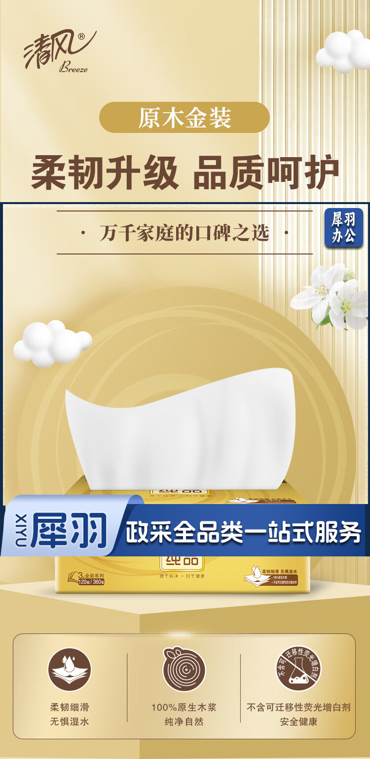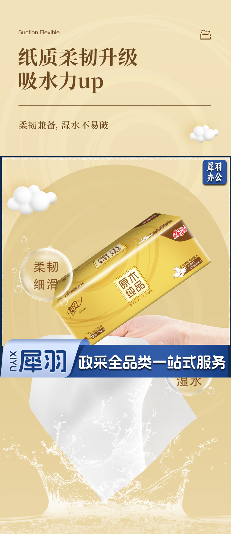 清风抽纸 原木金装9盒/箱 亲肤无刺激 卫生纸 餐巾纸巾整箱(10箱起售,偏远区域下单请电话咨询)