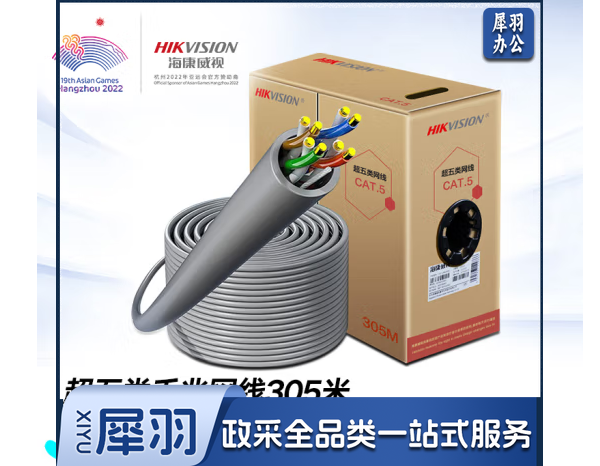 海康威视超五类网线工程版0.5mm无氧铜线芯CAT5e类非屏蔽网线家装网络布线监控箱线305米DS-1LN5EUSC
