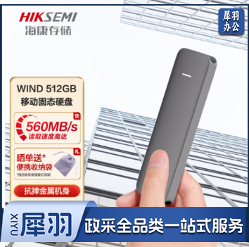 海康威视(HIKVISION)HS-ESSD-WIND 512G移动固态硬盘(PSSD)Type-c USB3.1接口 WIND 512GB 高速560MB/s 防震抗摔