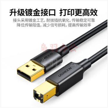 绿联(UGREEN)打印机数据线 USB2.0AM/BM方口镀金接头高速打印线 通用惠普HP佳能爱普生打印机连接线 5米