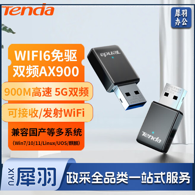 Tenda腾达 WiFi6免驱900M usb无线网卡 5G双频内置