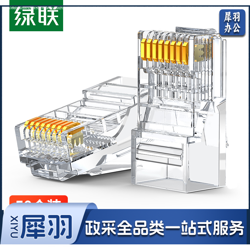 绿联(UGREEN)超五类RJ45网络水晶头 8P8C电脑网线Cat5e类连接头 工程级镀金非屏蔽连接器 50个/袋 20331
