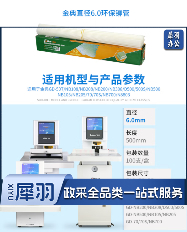 金典(GOLDEN)装订机装订管财务装订机铆管6.0mm 100支/盒