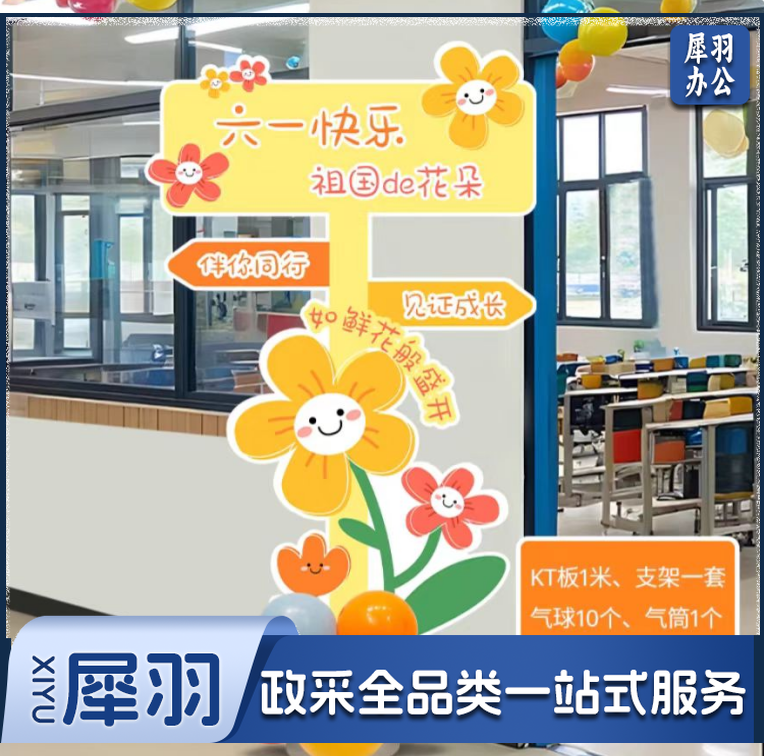 六一儿童节指引牌装饰学校幼儿园教室门口场景布置kt板立柱气球