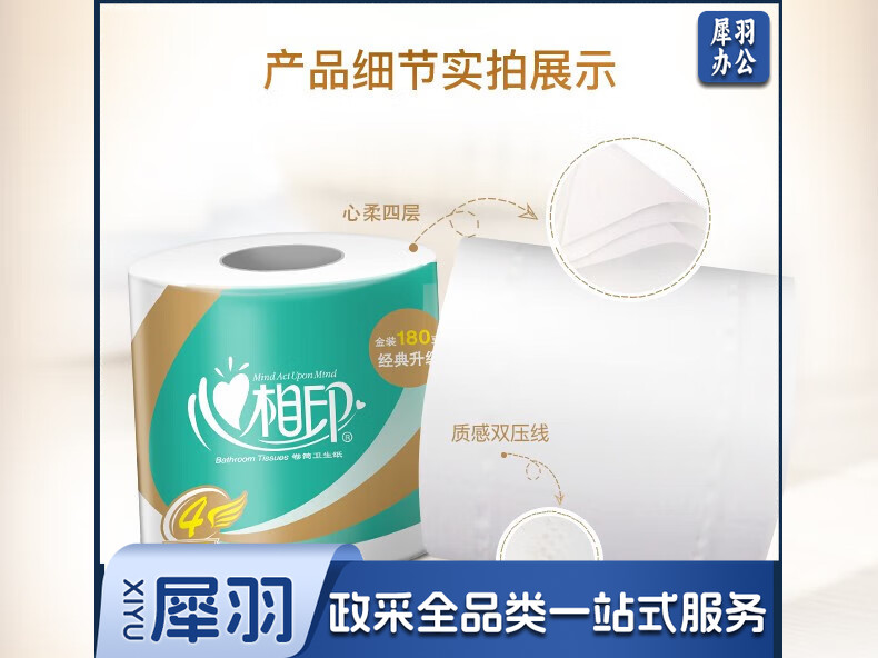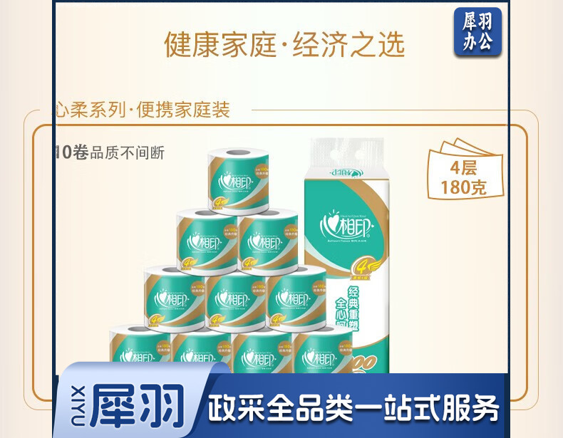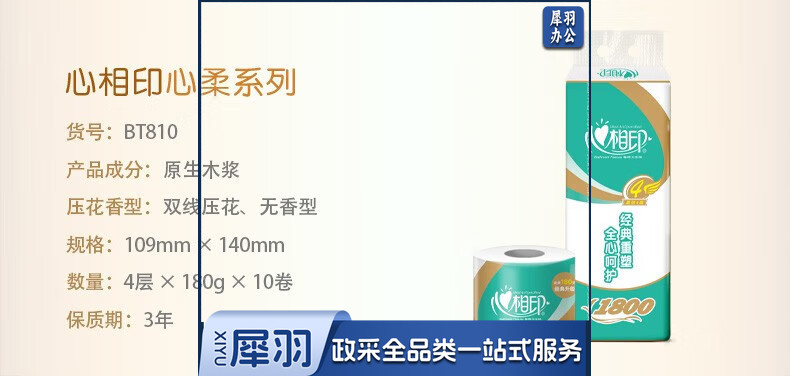 心相印(Mind Act Upon Mind)空芯卷纸绿色4层180克10卷装