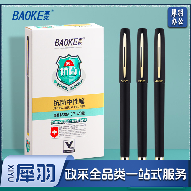 宝克(BAOKE) PC1838A大容量中性笔 商务签字笔签名笔 磨砂笔杆学生水笔 办公文具 PC1838A 0.7mm黑色 12支/盒