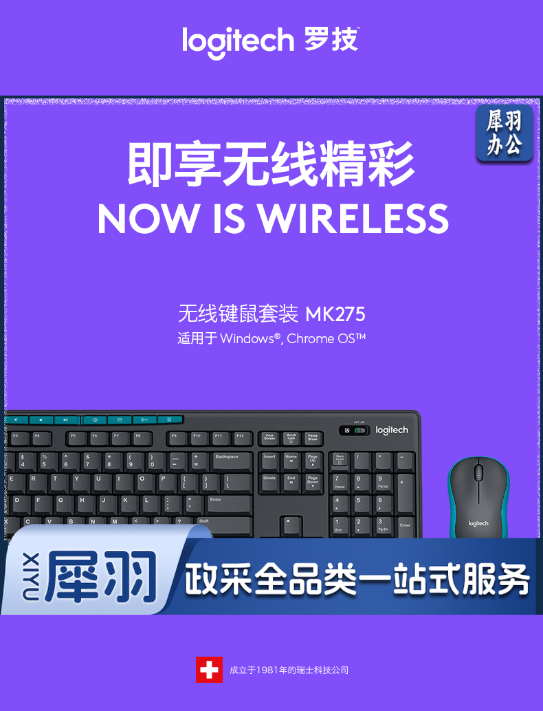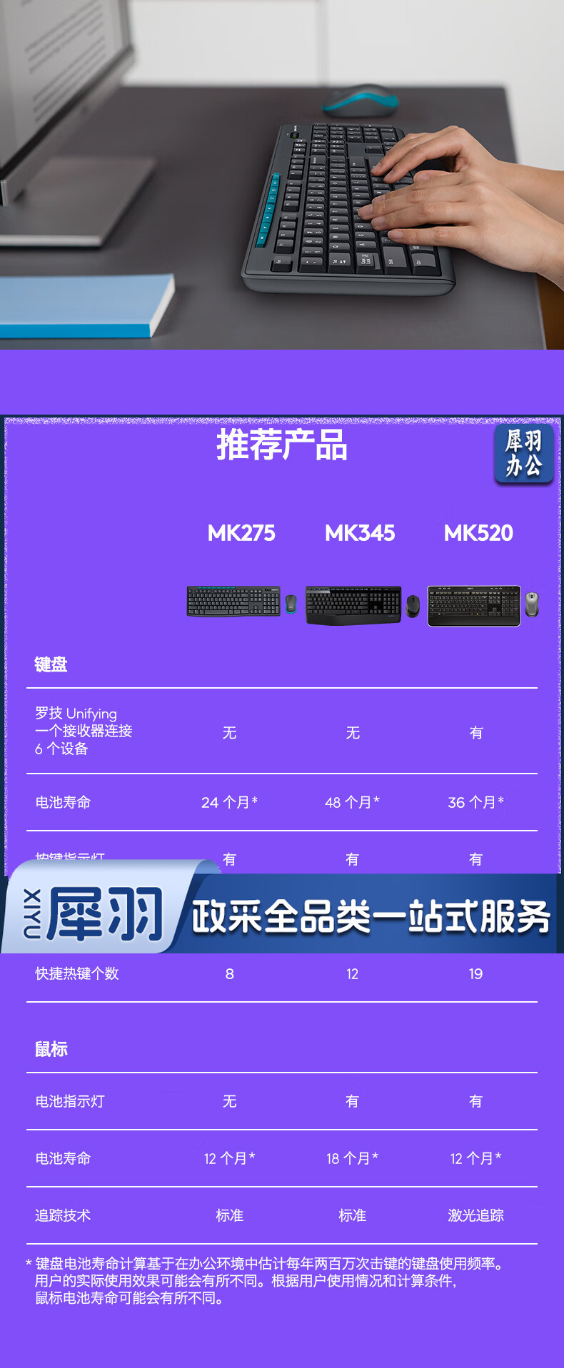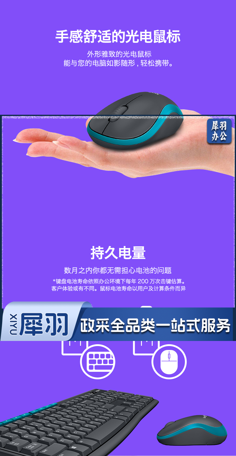 罗技(Logitech)MK275 键鼠套装 无线键鼠套装 办公键鼠套装 全尺寸 商务键鼠套装 带无线2.4G接收器 黑蓝色
