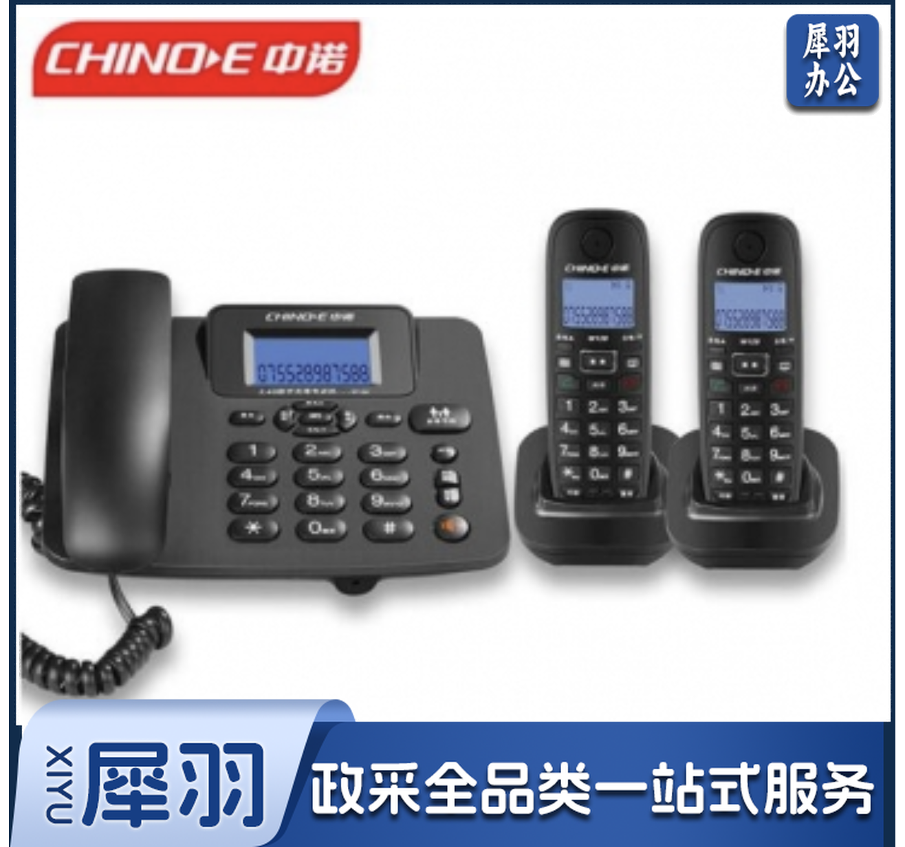 中诺 W128一拖二 数字无绳电话机无线座机子母机内线通话一键拨号免提通话固定电话 黑色