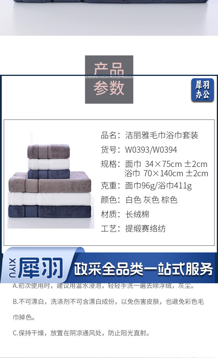 洁丽雅(grace)W0394/w0393 *长绒棉 毛圈 毛巾浴巾套装 一浴巾两毛巾套装 礼盒装