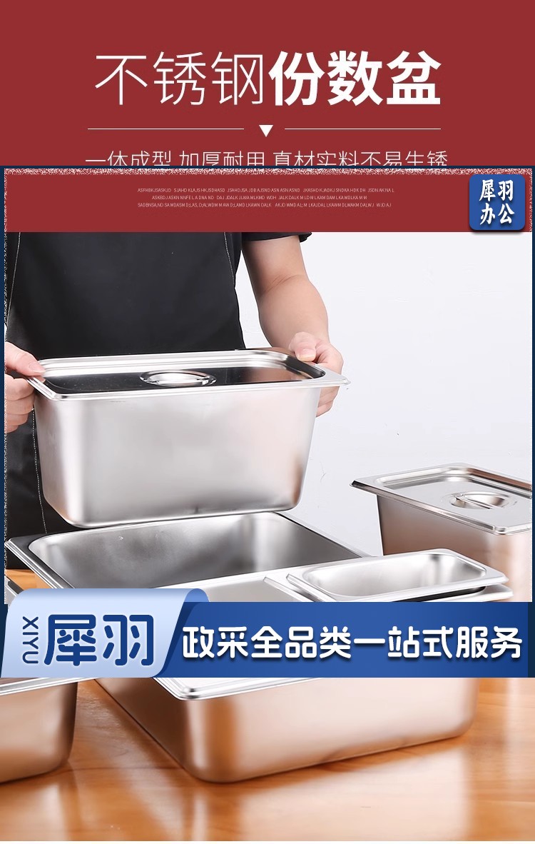 9cm深不锈钢份数盆盒子分数盒餐盆食堂打菜盆盛菜盆长方形食品级