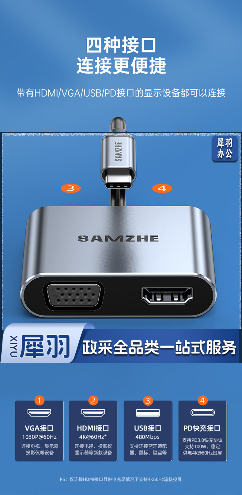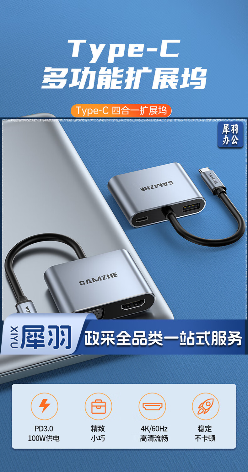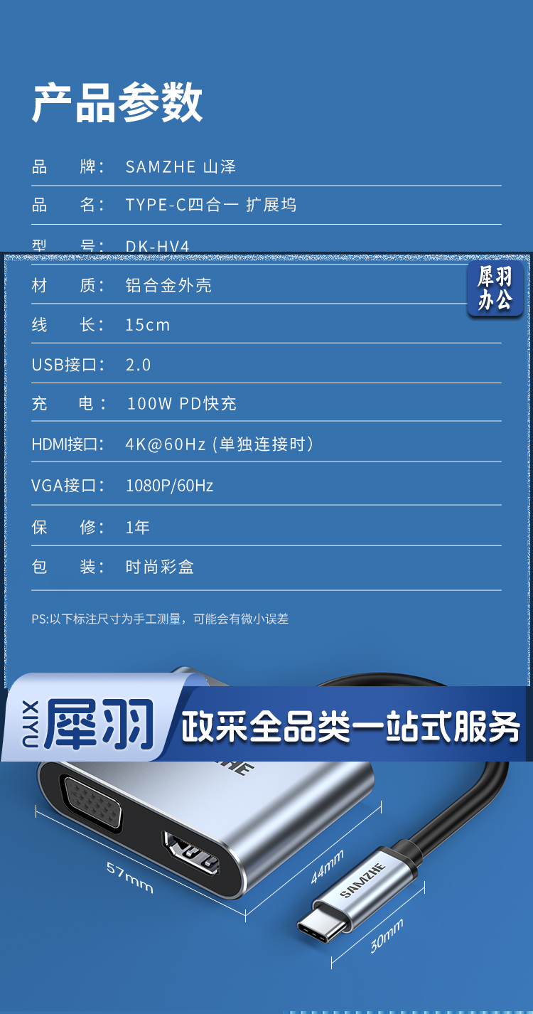 山泽Type-C扩展坞USB-C转HDMI/VGA转换器雷电3转接头笔记本拓展坞通用苹果MacBook电脑iPadPro华为手机DK-HV4