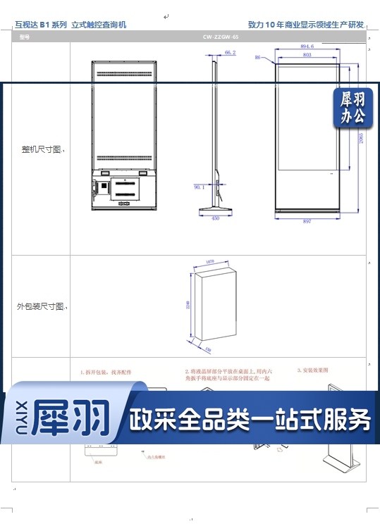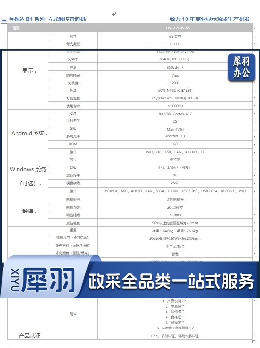 互视达(HUSHIDA)立式触控查询机 CW-ZZGW-65 i5 8 256G
