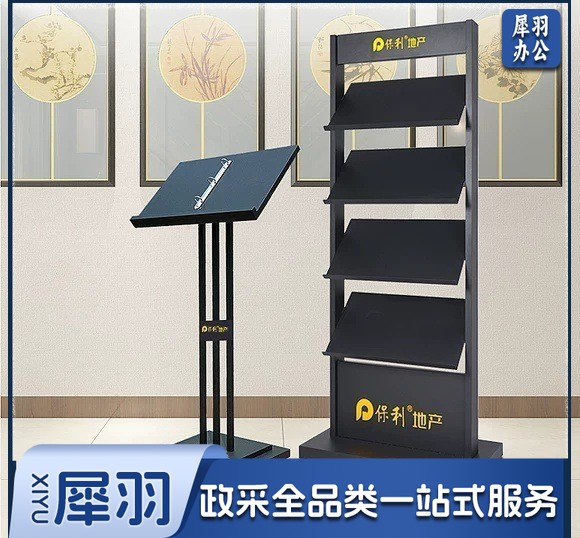 多层资料架金色 700*350*1550金色 落地售楼部合同活页架餐饮菜单翻页架子可以印logo资料架(不含玻璃)