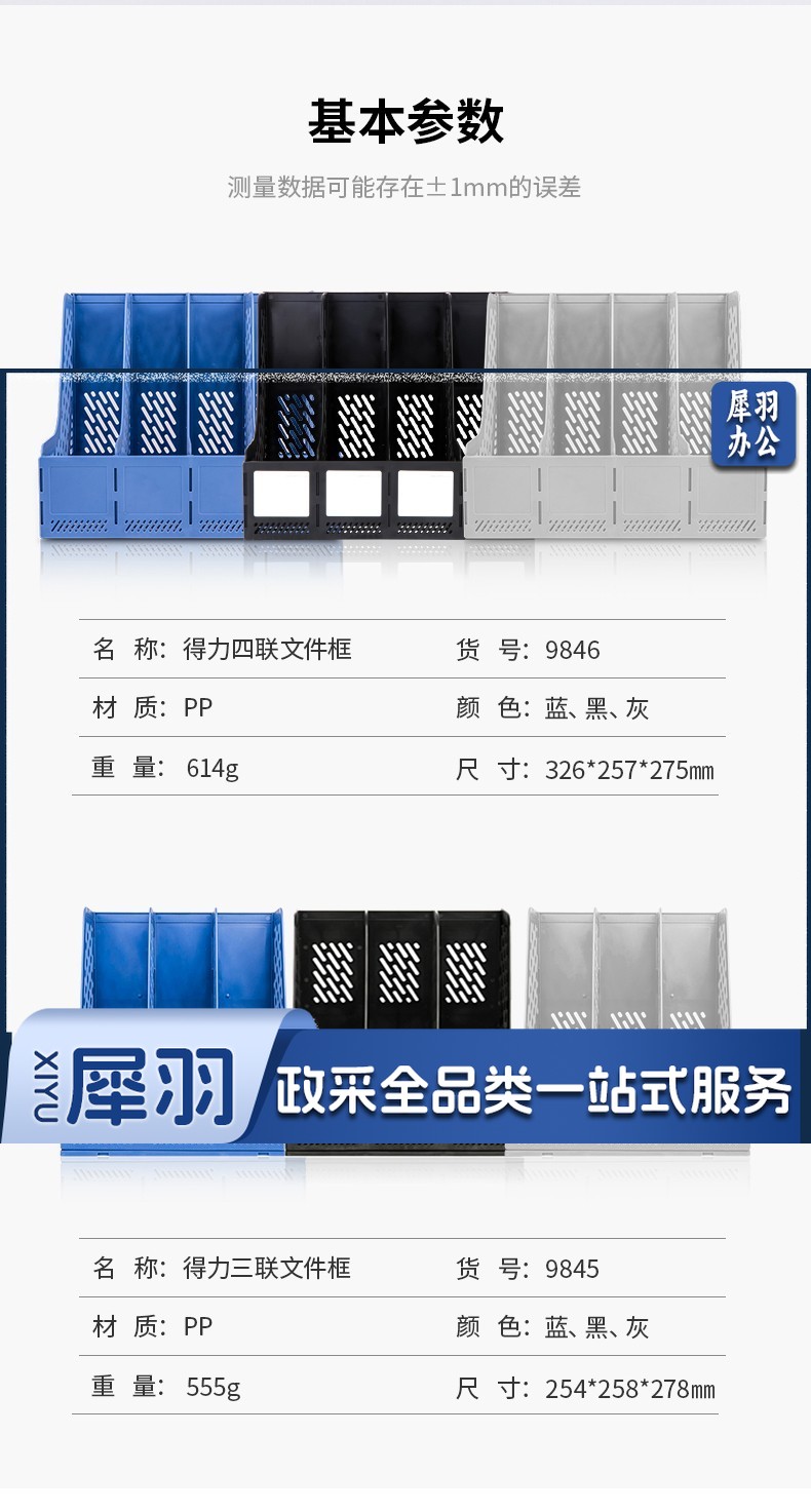 得力/deli 9845 三联文件框 254*258*278mm 黑色 单位:个