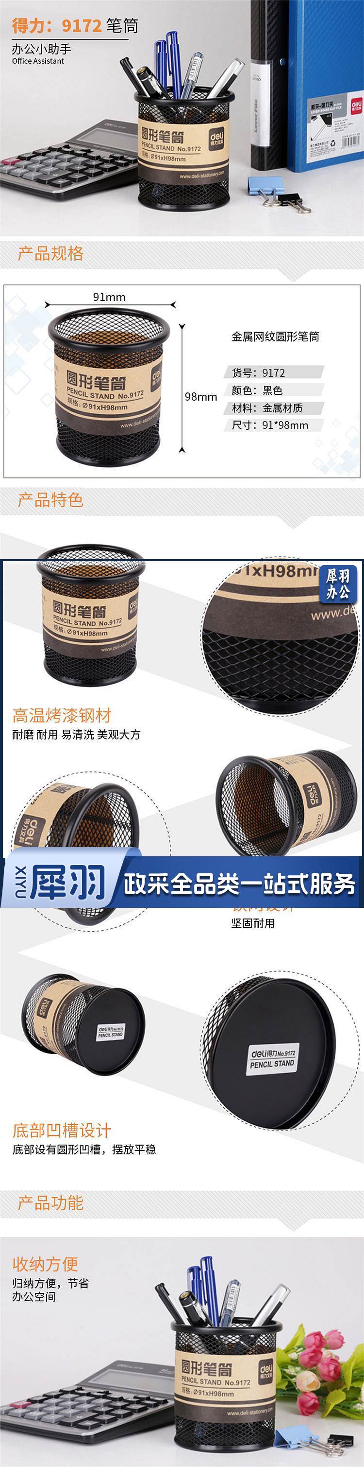 得力 9172 笔筒91x98mm 黑 圆形金属笔筒