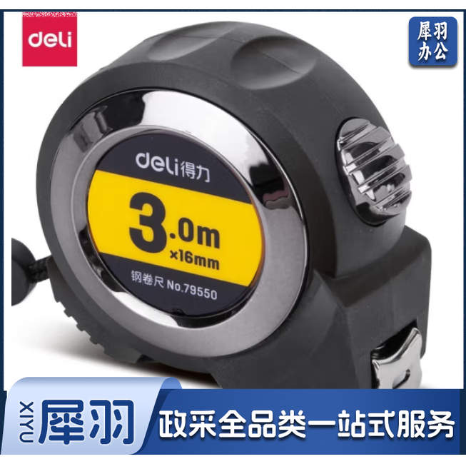 得力79550 自锁钢卷尺 3m盒尺3米卷尺
