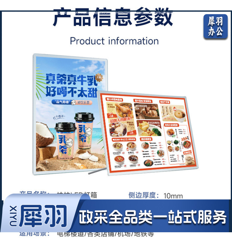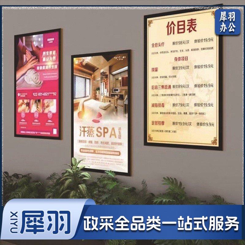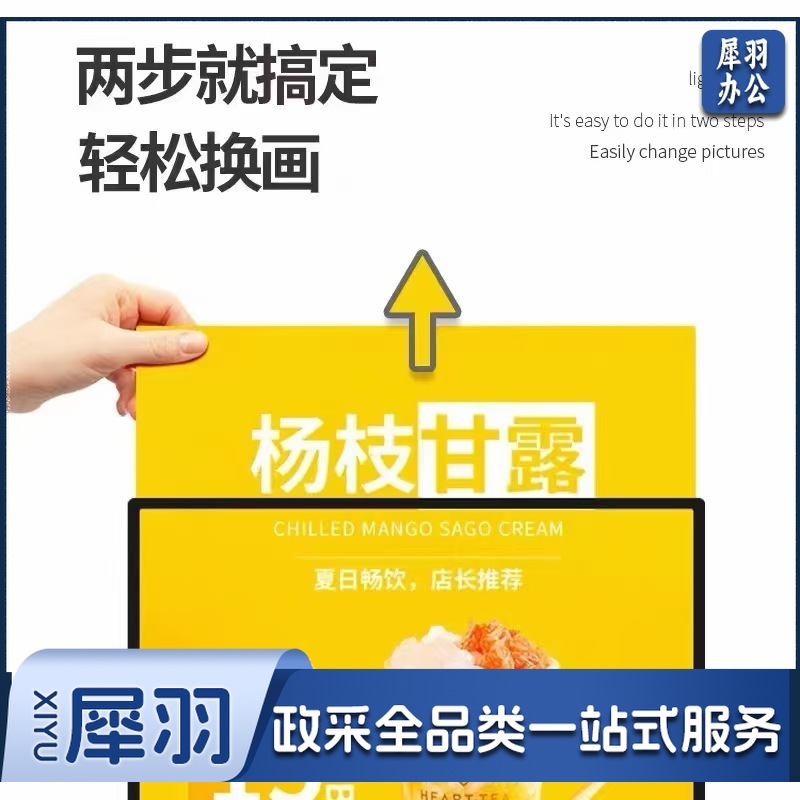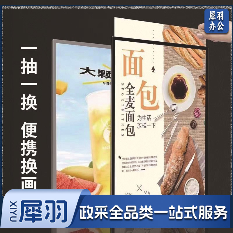 A 4 浅灰色 LED超薄灯箱钢化玻璃抽画灯箱桌面壁挂广告展示架窄边黑框银框