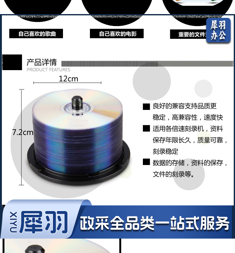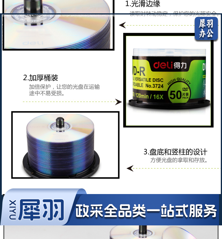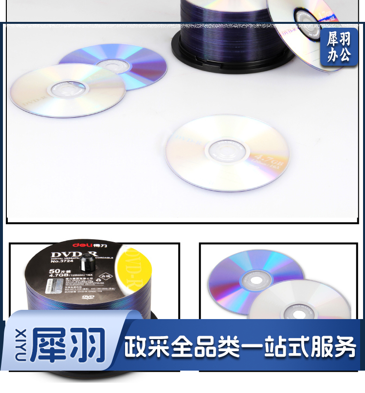 得力/deli 3724 DVD-R空白刻录光盘 50片/筒 (单位:盒)