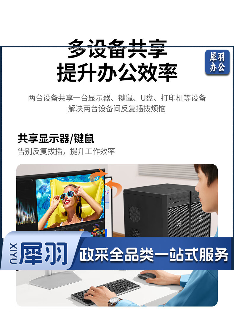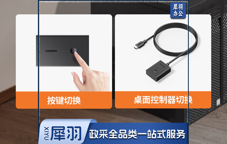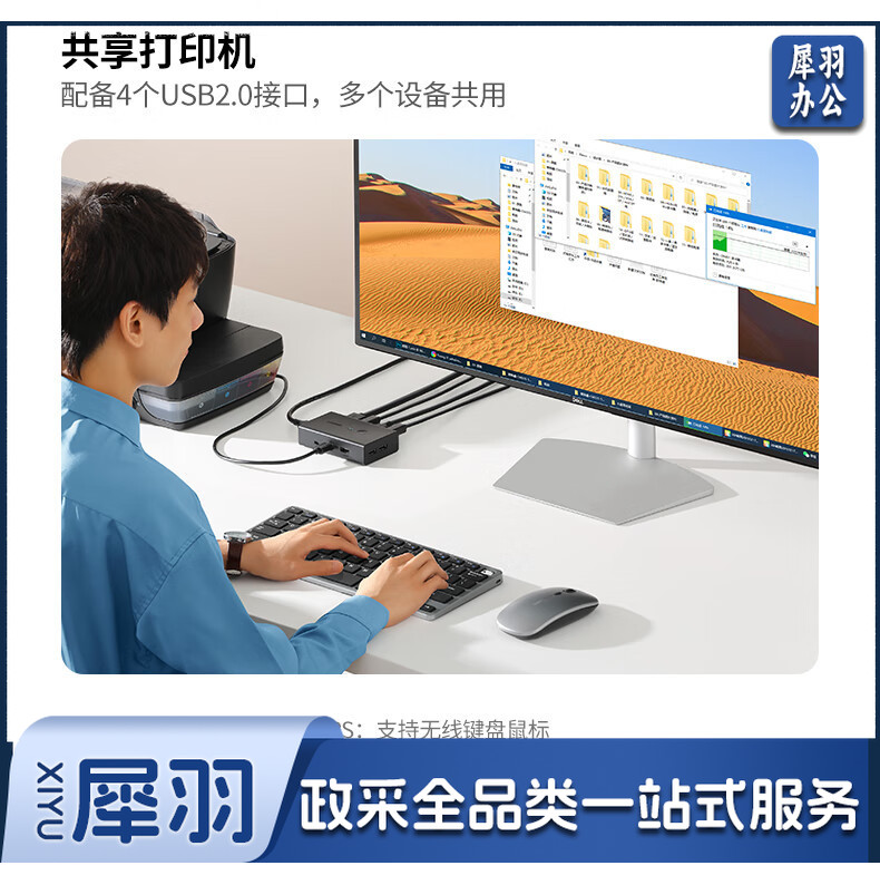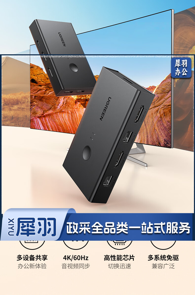 绿联90478 KVM切换器2进1出 HDMI2.0切屏器 二进一出4K60Hz高清共享器 适用USB打印机/键鼠接两台式共享显示器
