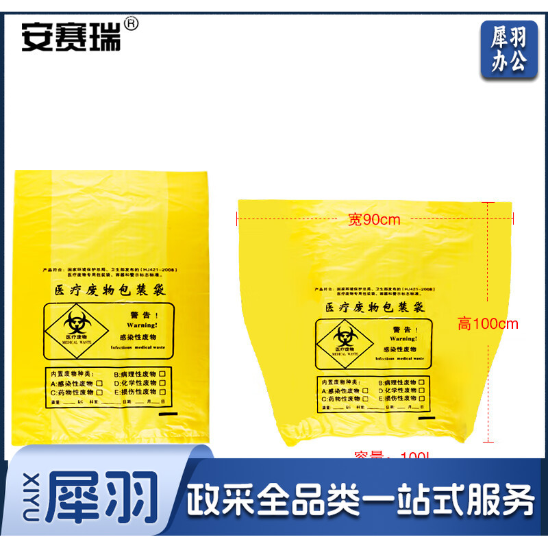 平口HDPE医疗垃圾袋 100L 90*100cm
