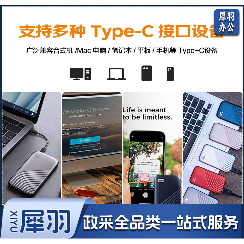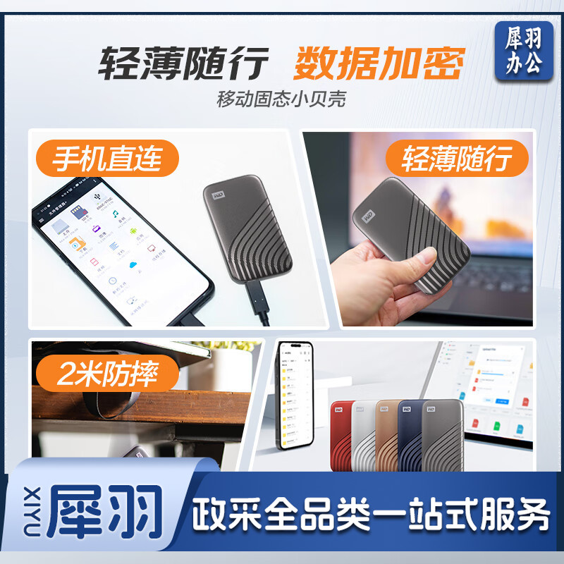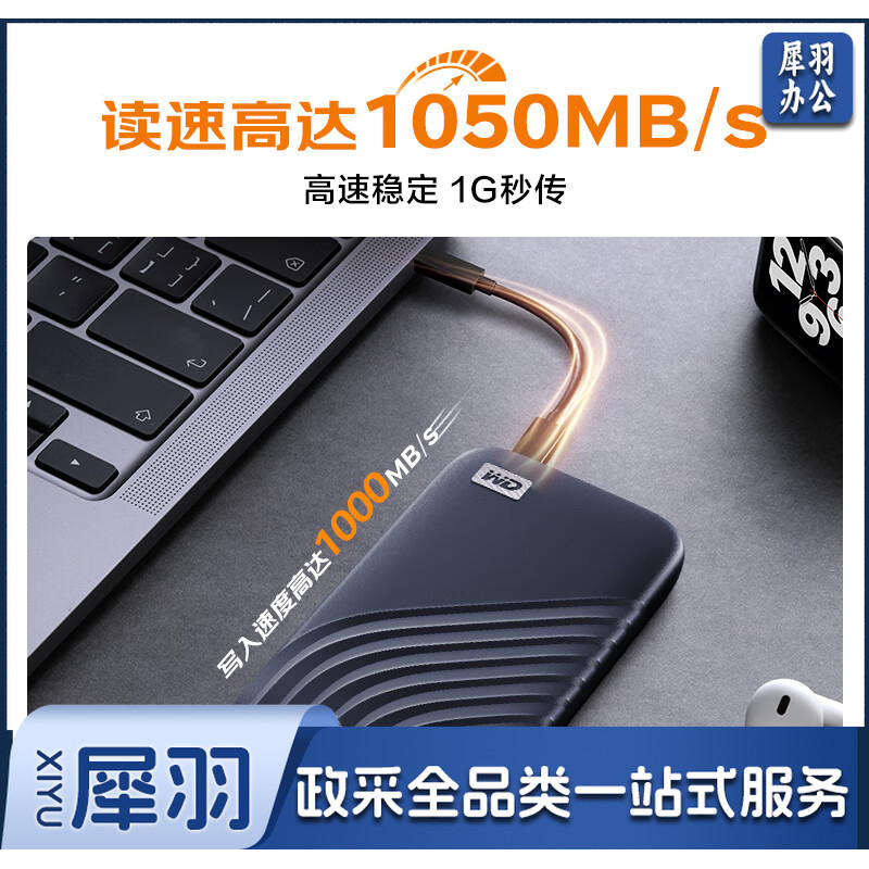 西部数据(WD)2TB NVMe 移动固态硬盘(PSSD)My Passport随行SSD type-c接口 1050MB/s 手机直连笔记本外接