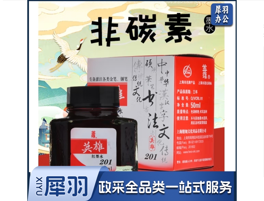 英雄(HERO)钢笔/签字笔墨水非碳素墨水50ml红色英雄墨水201