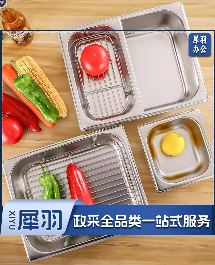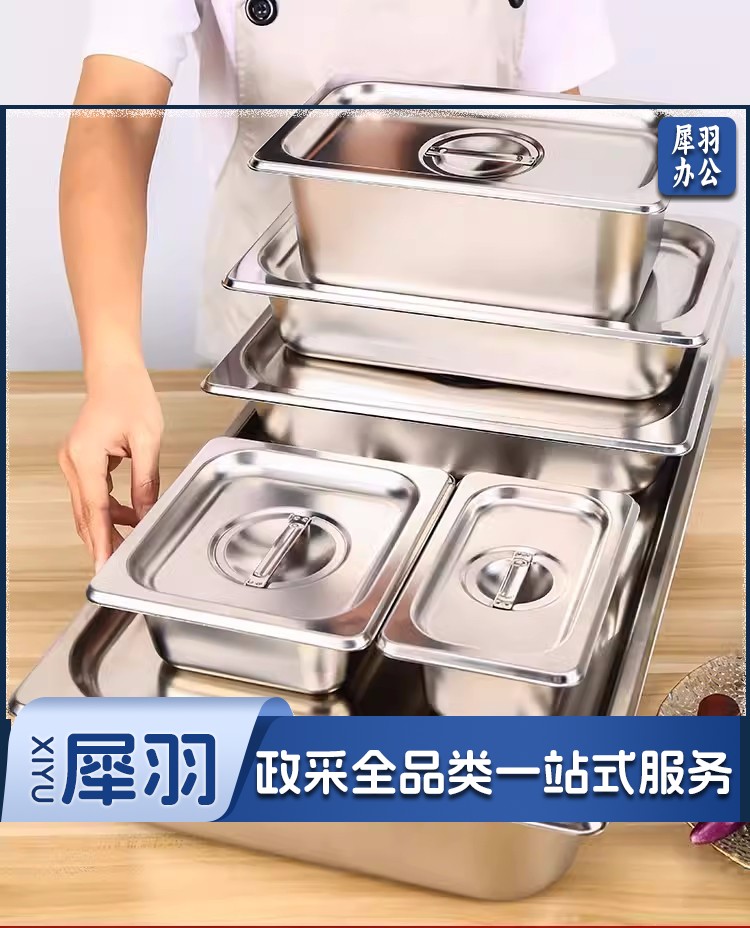 不锈钢盆 长方形大容量带盖加深方盆快餐车菜盆餐盘 30*50