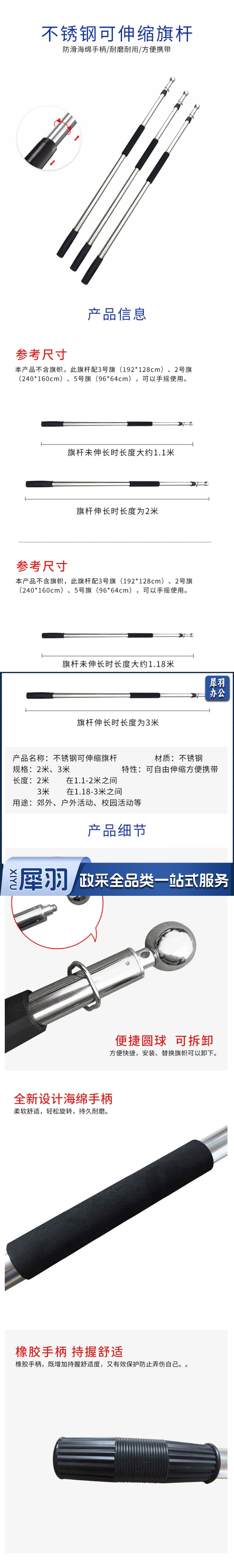 手持党旗旗杆 加粗加厚 国旗伸缩旗杆红旗杆收缩党旗杆国旗杆户外 3米不锈钢伸缩旗杆