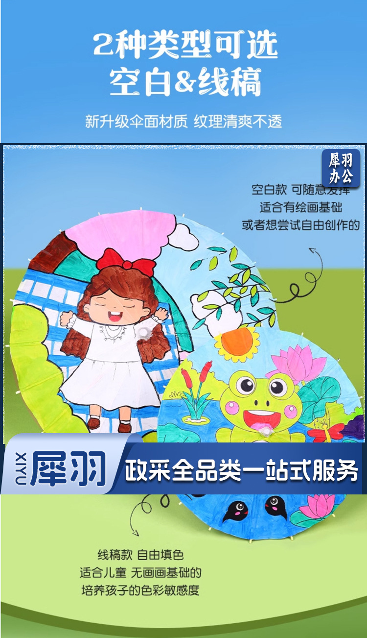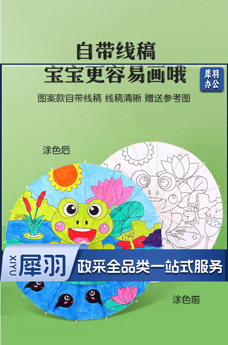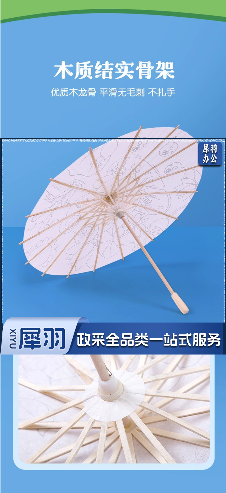 空白油纸伞 儿童diy手工材料幼儿园手绘绘画白色雨伞中国古风道具(空白-直径30cm油纸伞)