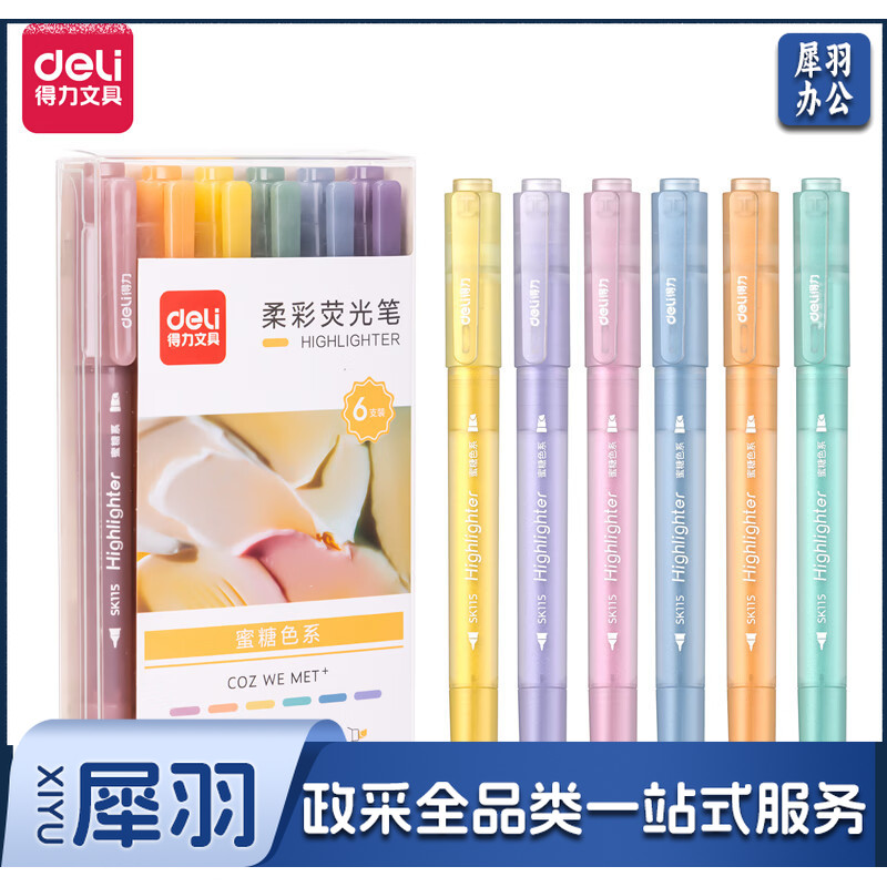 得力(deli) 双头荧光笔 彩色记号笔 6色装SK115