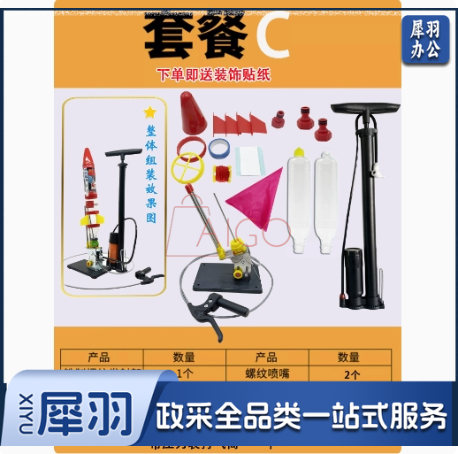 水火箭发射架带降落伞全套制作材料尾翼喷嘴儿童拼装滞空科学实验套装C500ml(打气筒带压力表)