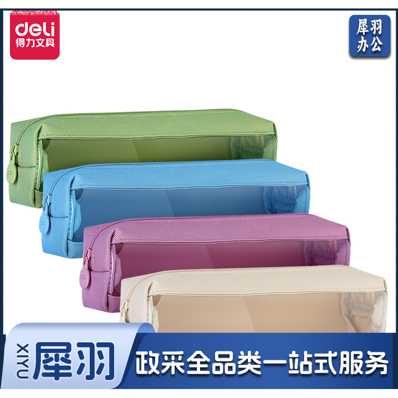 得力 简约透明可视窗小方包 多用途铅笔袋 颜色随机 BC109