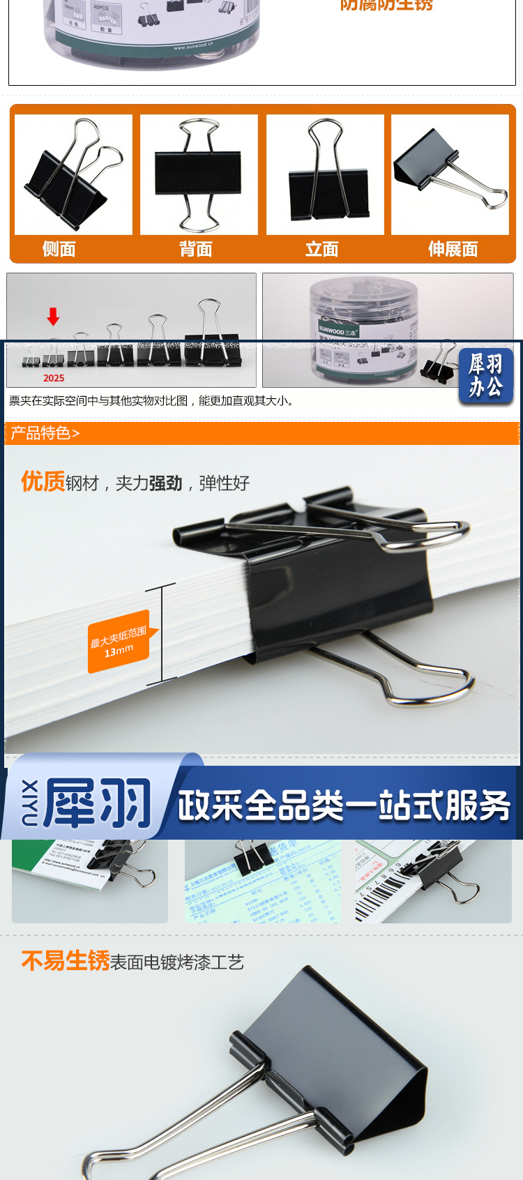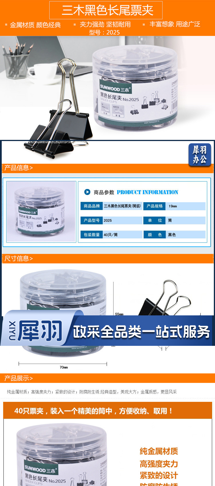 三木(SUNWOOD) 2025 19mm黑色长尾夹 5号 40只/筒(计价单位:筒)
