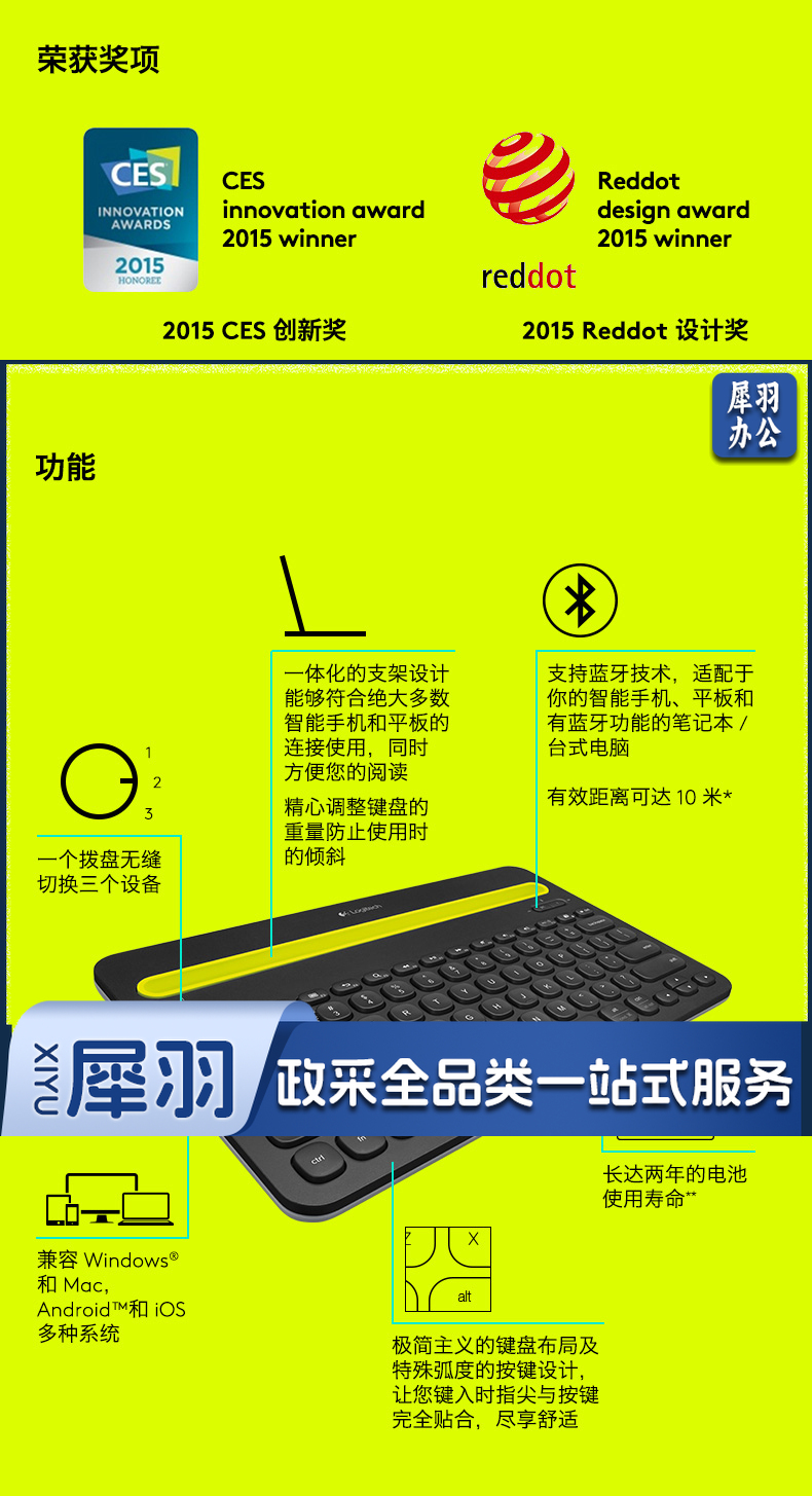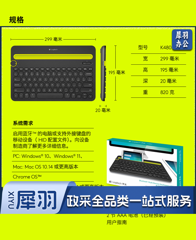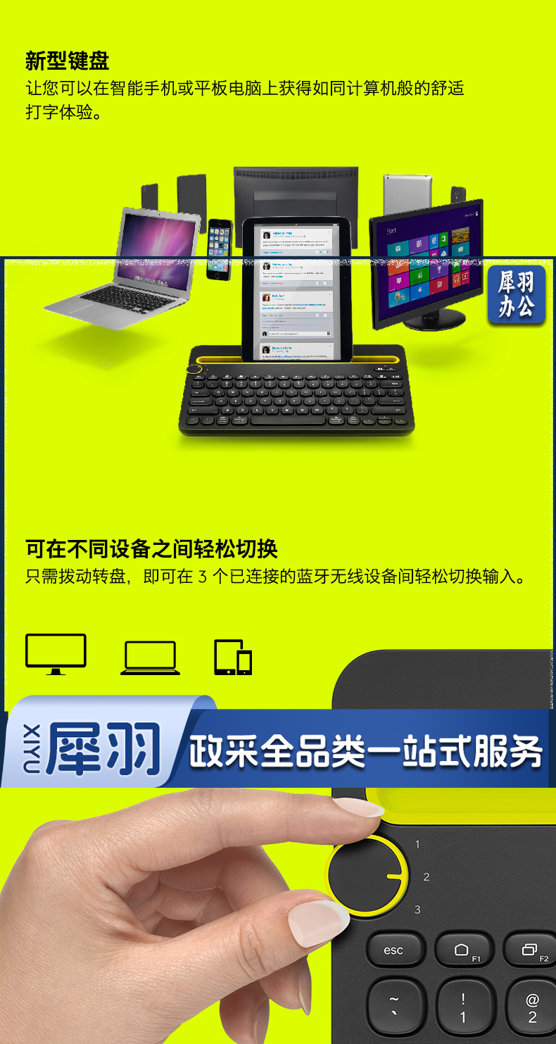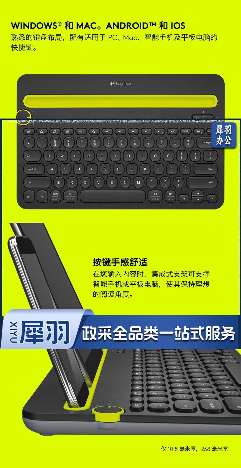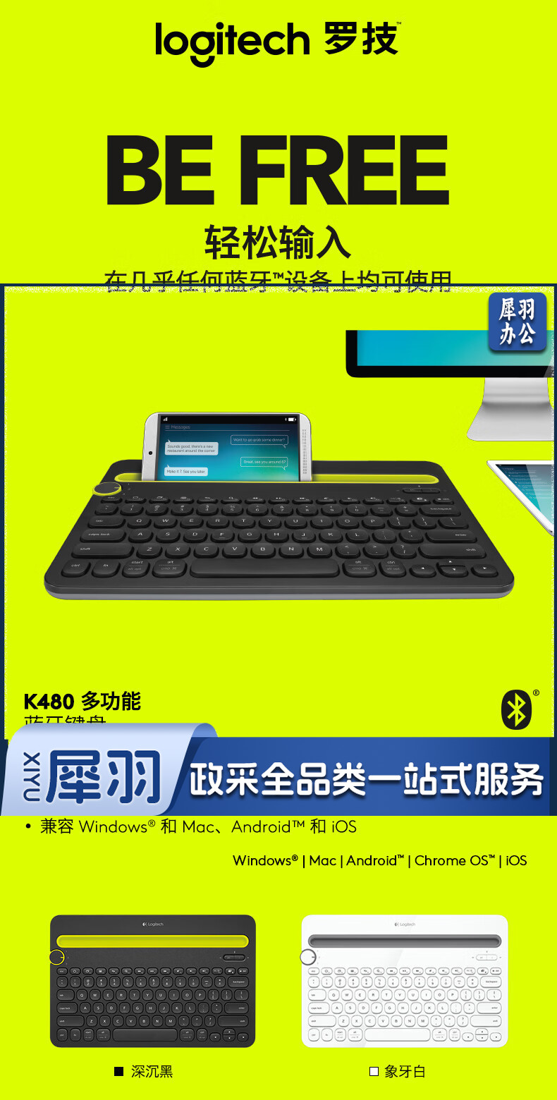 罗技(Logitech)K480 键盘 蓝牙键盘 黑色