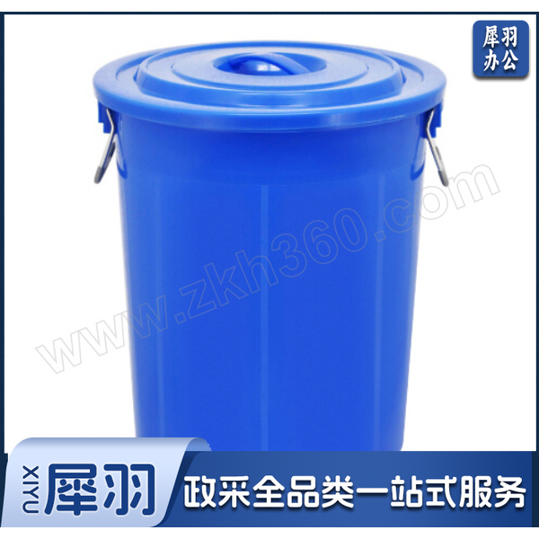 金属把手加厚带盖塑料圆桶 FW1363 150L 蓝色 1个 销售单位:个