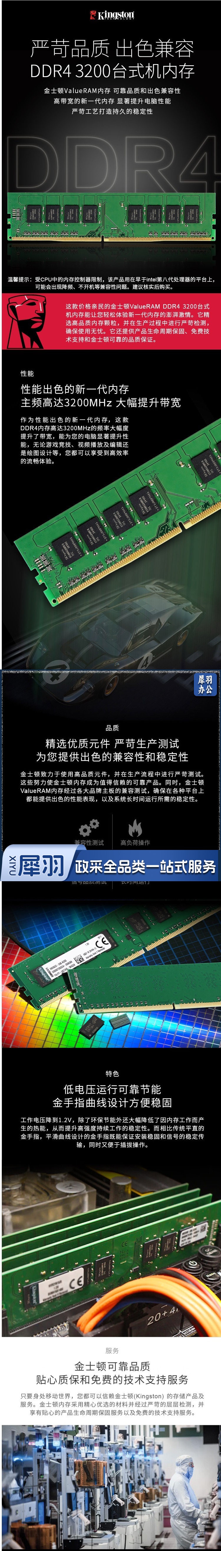 金士顿 (Kingston) 8GB DDR4 3200 台式机内存条
