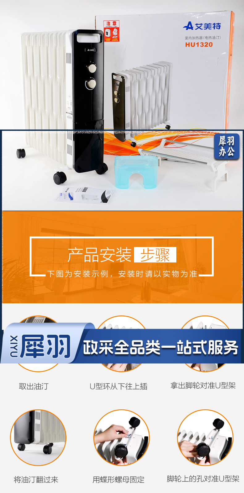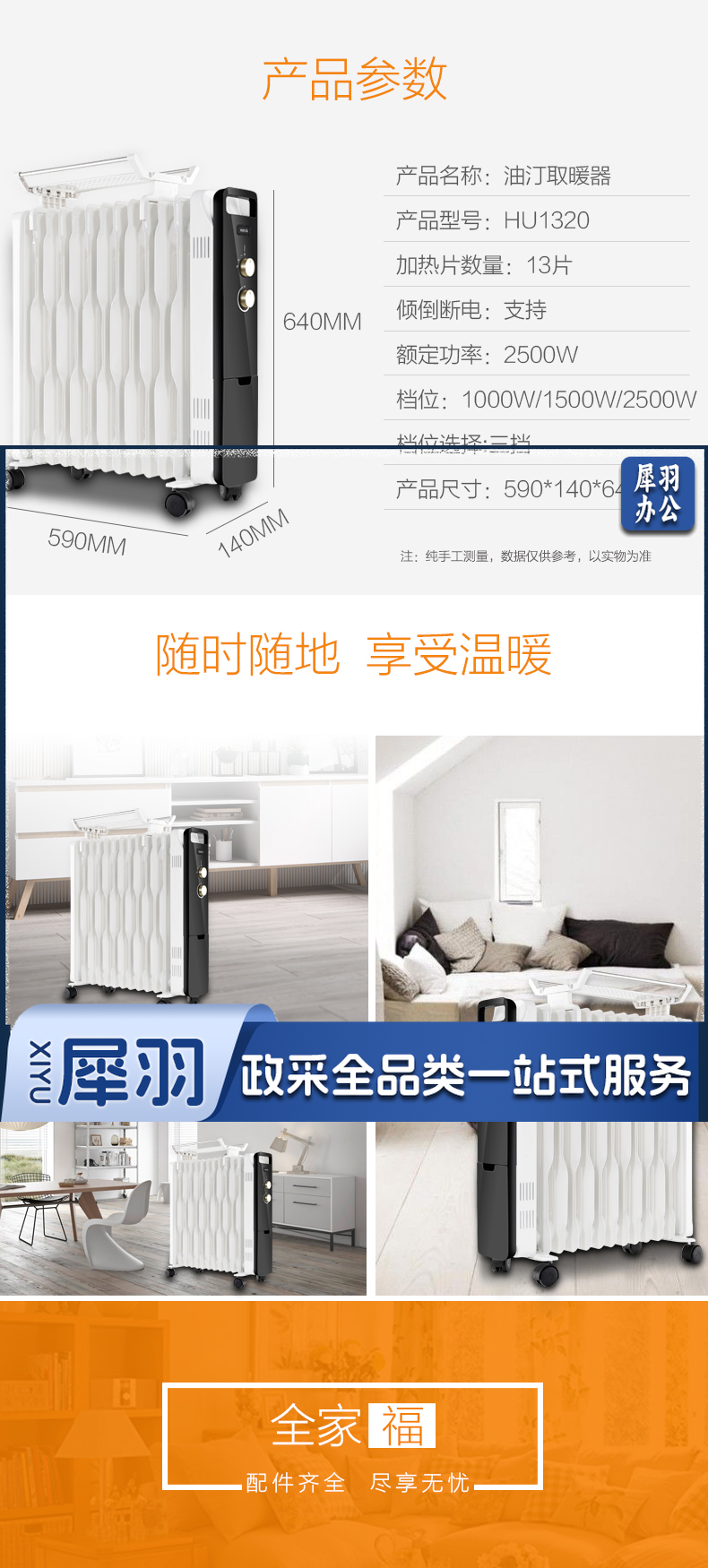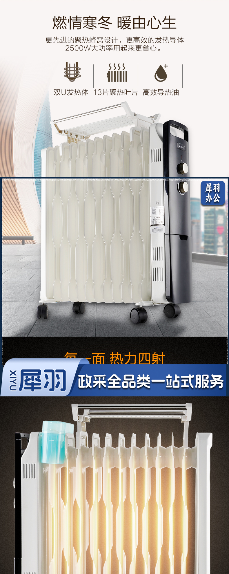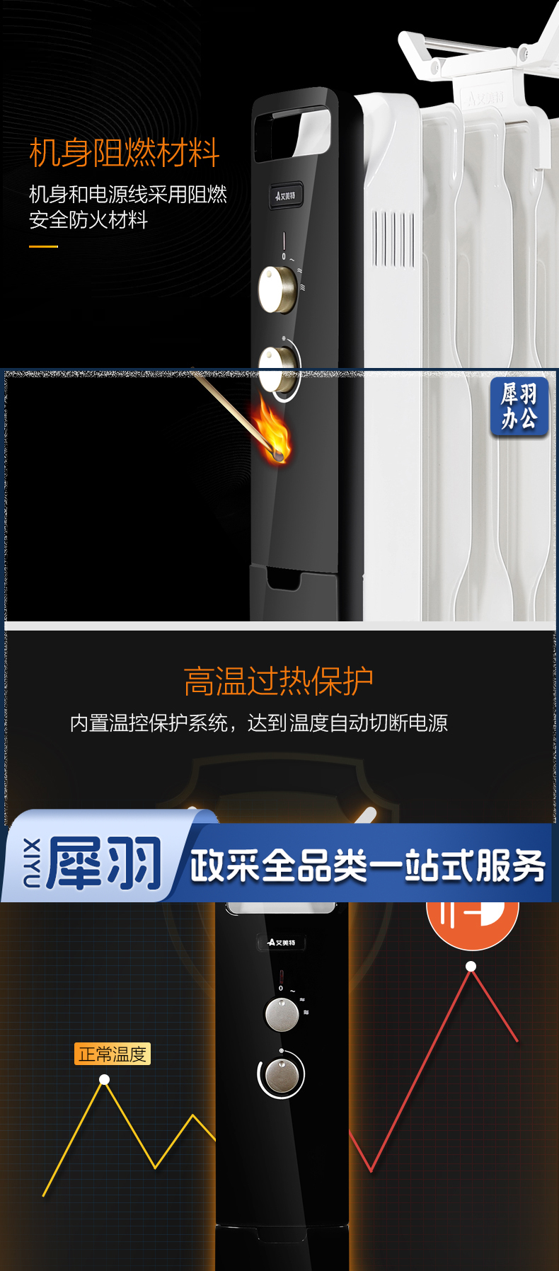 艾美特 13片 电暖气油汀取暖器 三档调温办公室节能省电取暖器 HU1320